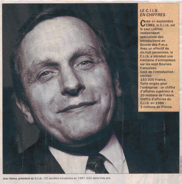 Jean Salwa fonde le CIB, Centre d’Information Boursière pour les PME-PMI, après une longue carrière chez Tuffier puis comme remisiers. L’objectif est de promouvoir l’usage des bourses régionales par les entreprises, soutenu dès les débuts par Tuffier, Ferri et Oddo avec l’appui d’Yves Flornoy.